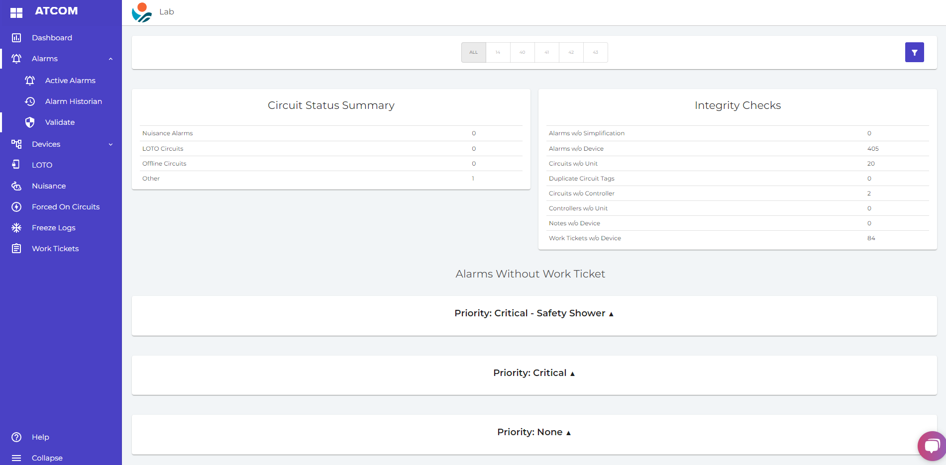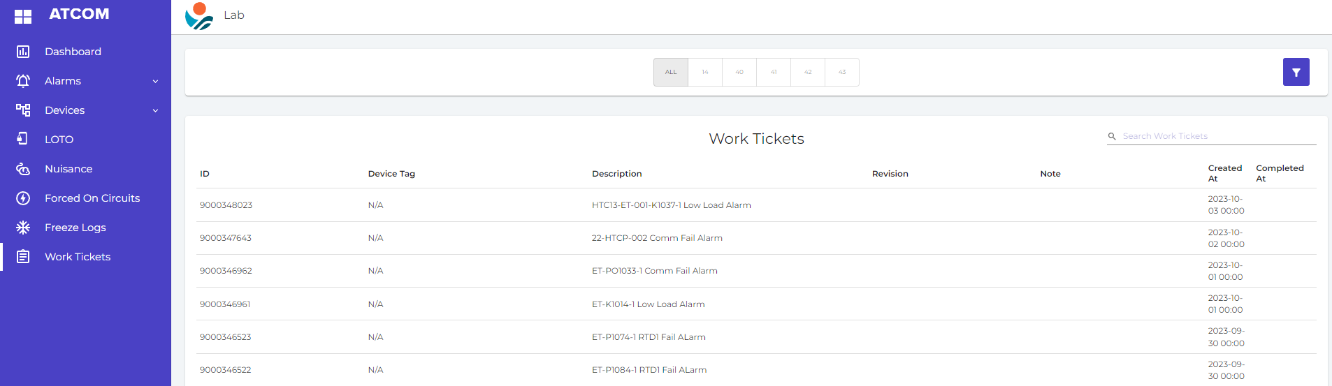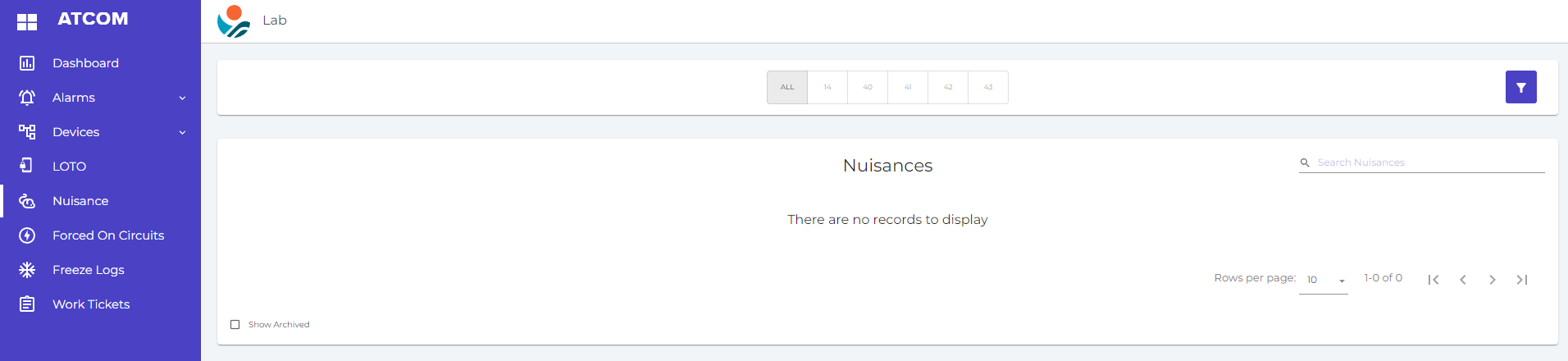 In most ATCOM+ pages, you'll notice a filter bar located at the top of the screen. This convenient tool allows you to quickly filter data based on specific facility areas or heat trace circuits, making it easier to focus on the information you need.