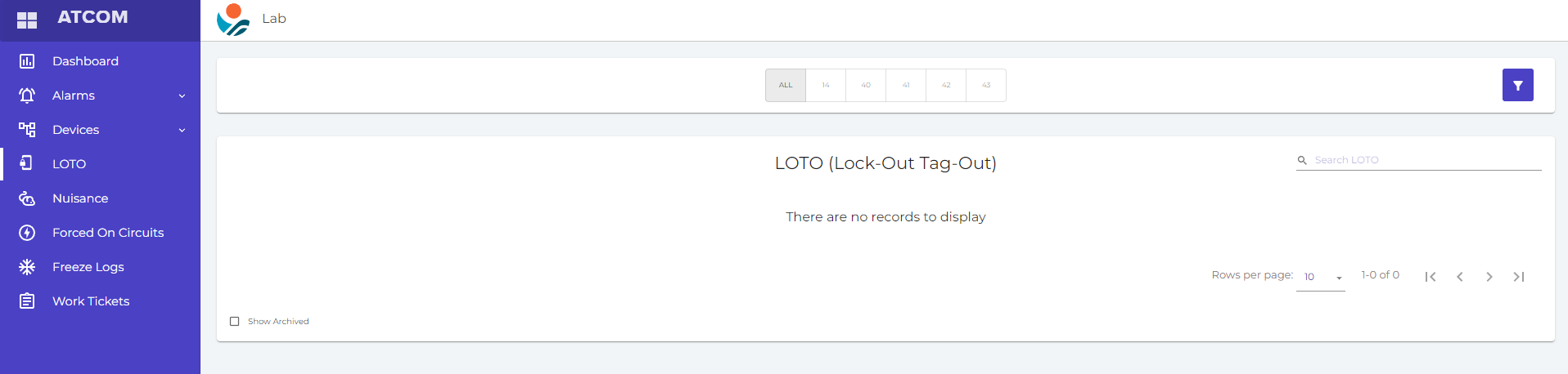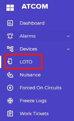 LOTO Menu - Now, let's explore the "LOTO Menu," where users can efficiently manage and track all circuits that have been locked out as part of Lockout Tagout (LOTO) procedures.