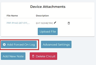 It should be noted that adding a Forced-On Log to a circuit does not physically Force-On that circuit, the user is still responsible to force that circuit on physically in a method that suits the specific heat trace controller. (either the control mode is changed, or the maintain setpoint temperature is increased temporarily).