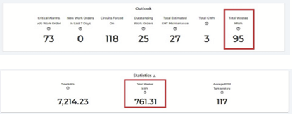 The ATCOM+ dashboard will also indicate the wasted power of Forced-On circuits by summing the individual wasted power of each Forced-On circuit in the outlook section. The individual wasted hours for each Forced-On circuit can be found on that circuit's page in the statistics section.