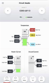 - Real-time data on temperature, heater current, and ground leakage current.
