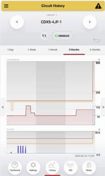 Explore temperature and current data plotted over a span of up to six months, alongside recorded set point changes.