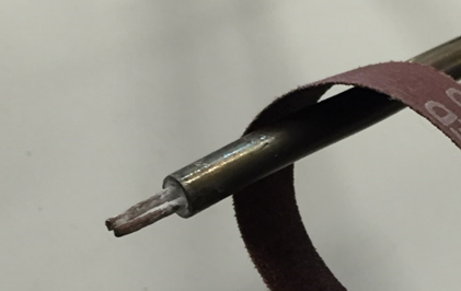 - Use sandpaper to clean sheath approximately 100mm (4”) from end