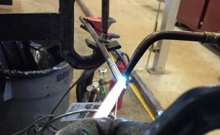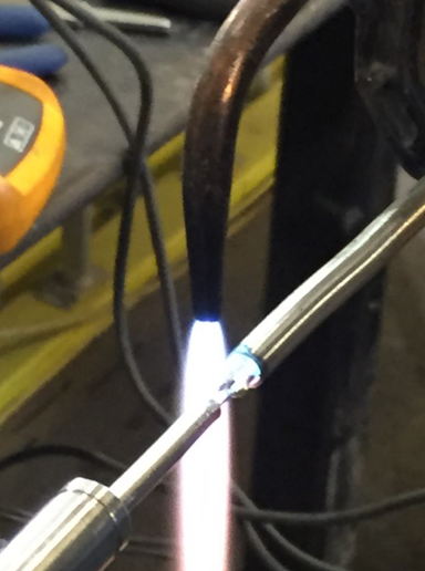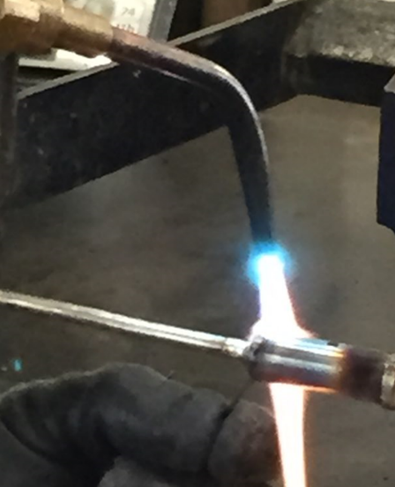 - Using Acetylene Turbo Torch place a small amount of solder onto both conductors (conductors with flux) – this is called tinning