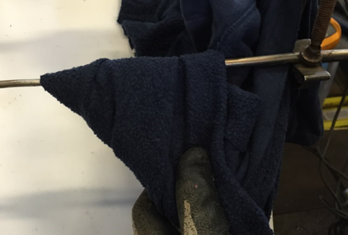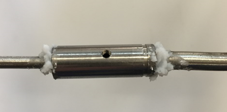 - Using propane torch, seal both exposed sections with wax stick