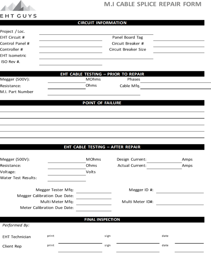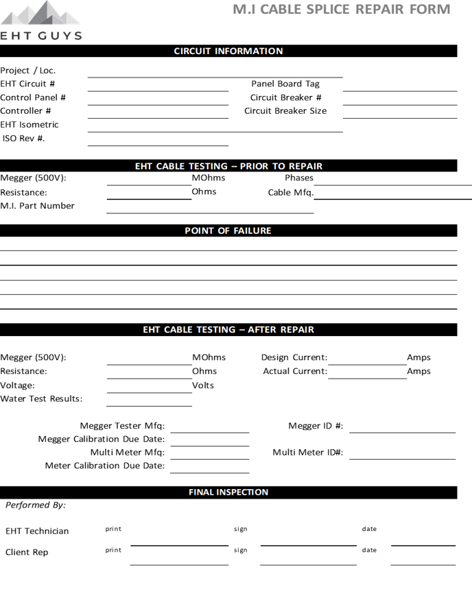 This repair guide outlines the step by step process of repairing mineral insulated, M.I., cables. The steps outlined are specifically related to the repair of a two conductor Hot/cold joint. These practices can be adapted to any M.I. cable repair.