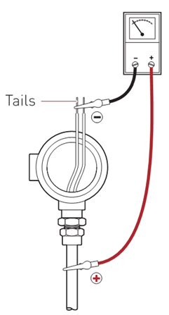 - Clamp the positive test lead to the sheath of the M.I. cable